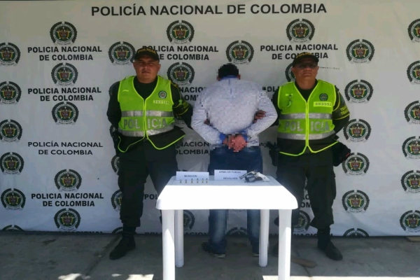 En atención a la estrategia integral contra los delitos que afectan la vida humana, el departamento de Policía Tolima se permite informar que siendo aproximadamente las 02:30 de la tarde, momentos en que personal de la seccional de tránsito y trasporte realizaban puesto de prevención y control en el kilómetro 81, sector achiqué jurisdicción del municipio de Natagaima, se logra la captura en flagrancia de un sujeto de 49 años de edad, a quien mediante registro a personas se le halló en su poder dentro de la pretina del pantalón un arma de fuego tipo revolver calibre 32 largo, con cuatro cartuchos para el mismo y dos vainillas percutidas, sin permiso para porte o tenencia.
