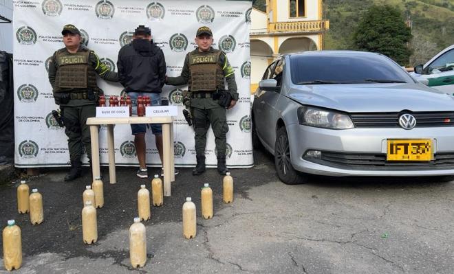 La detención de esta persona se dio después de que las autoridades hallaran una caleta de estupefacientes ocultos en el tanque del vehículo en el que se movilizaba, los narcóticos habían sido introducidos en el tanque de gasolina del automotor en 22 tarros plásticos.