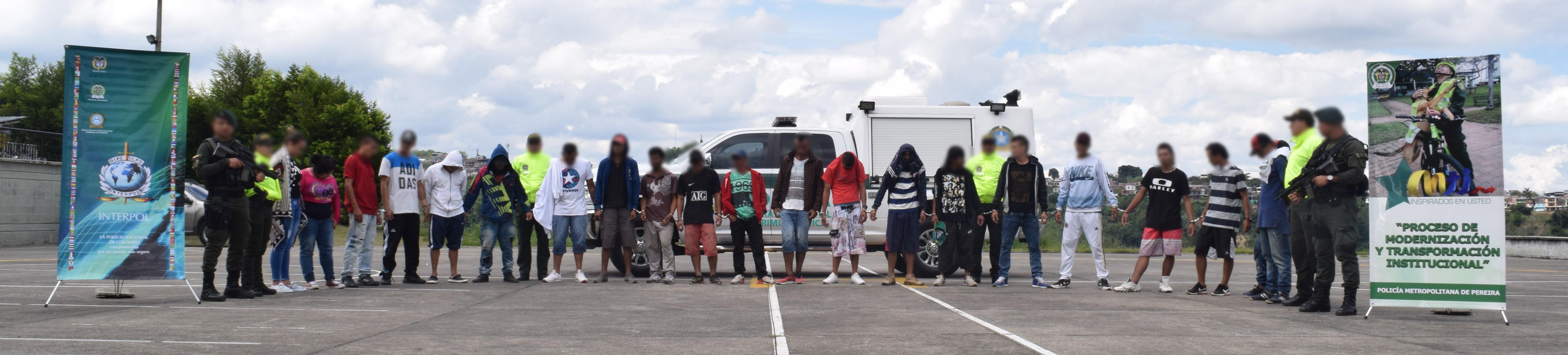 La Virginia. El grupo de operaciones especiales “Elite” de la Policía Metropolitana de Pereira, mediante un arduo trabajo articulado con la Fiscalía General de la Nación, en desarrollo de actividades tendientes a contrarrestar el accionar delictivo de integrantes de bandas delincuenciales que afectan la seguridad ciudadana en el área metropolitana, efectuaron en las últimas horas la operación “Cáncer” mediante la ejecución de 17 diligencias de allanamiento y registro en el municipio de La Virginia. Esta operación dejó como resultado la captura mediante orden judicial de 23 personas y la aprehensión de cinco menores de edad pertenecientes a un grupo delincuencial dedicado al expendio de estupefacientes bajo la modalidad callejera, en el barrio San Antonio y lugares aledaños a establecimientos educativos como Antonio Ricaurte, Gabriela Mistral y Bernardo Arias Trujillo del municipio de la Virginia; así como también en el barrio 20 de julio y en inmediaciones del colegio Gabriel Trujillo del corregimiento de Caimalito. De acuerdo con las informaciones recolectadas por fuentes humanas y a los diferentes procesos investigativos adelantados, se logró conocer las actividades ilícitas desarrolladas por cada uno de sus integrantes, sus roles dentro de la estructura delincuencial, su modus operandi y la recolección de los elementos materiales probatorios o evidencias físicas, que permitieron en coordinación con la Fiscalía General de la Nación, la identificación, individualización, judicialización y captura de los principales responsables de la comercialización de sustancias estupefacientes en el sector, en donde se distribuían principalmente sustancias alucinógenas conocidas como “marihuana, cocaína y bazuco”, siendo los directos responsables del almacenamiento, distribución y comercialización de los narcóticos, permitiéndoles obtener ganancias superiores a los $100.000.000 mensuales, liderando así el “monopolio” del expendio de alucinógenos en esta jurisdicción. Dentro de las actividades judiciales desplegadas por la Policía Nacional que duraron aproximadamente ocho meses, se realizaron acciones de vigilancia y seguimiento con agentes encubiertos, permitiendo evidenciar más de 100 transacciones de distribución, venta y comercialización de estupefacientes; éstas personas deberán responder ante la justicia por los delitos de concierto para delinquir y tráfico, fabricación o porte de estupefacientes (Artículos 340 y 376 del Código Penal). Queremos reiterar el agradecimiento a la comunidad, porque gracias a la oportuna información suministrada, se han emprendido labores investigativas que han permitido resultados contundentes en contra de este flagelo, la invitación es para continuar trabajando mancomunadamente y así seguir velando por la convivencia y seguridad ciudadana.