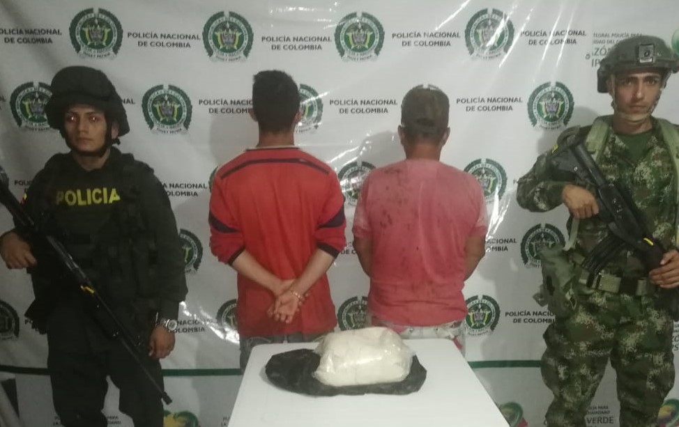 Gracias a los controles que realizan los uniformados en las vías del departamento, en las últimas horas funcionarios de la Estación de Policía del municipio de San José del Fragua en coordinación con el Ejército Nacional mediante registro a personas y vehículos lograron la captura de estas dos personas quienes se movilizaban en una motocicleta e intentaron evadir el puesto de control realizando un giro para devolverse; inmediatamente los policías en una rápida acción los interceptan y al requisarles un bolso que portaba el parrillero le hallan una bolsa transparente que contenía en su interior base de coca.