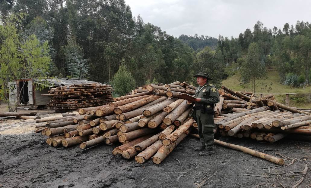 En actividades de prevención y control al tráfico de biodiversidad de fauna y flora en el ámbito urbano y rural de la región, por parte del grupo de Policía Ambiental y Ecológica con apoyo de las unidades policiales de Carabineros en busca de la defensa y protección del ambiente y los recursos naturales, en el perímetro rural vereda Salitre del municipio de Paipa logramos la incautación de 33 metros cúbicos de madera de diferentes especies (eucaliptus y acacia) distribuidos en 505 palancas.