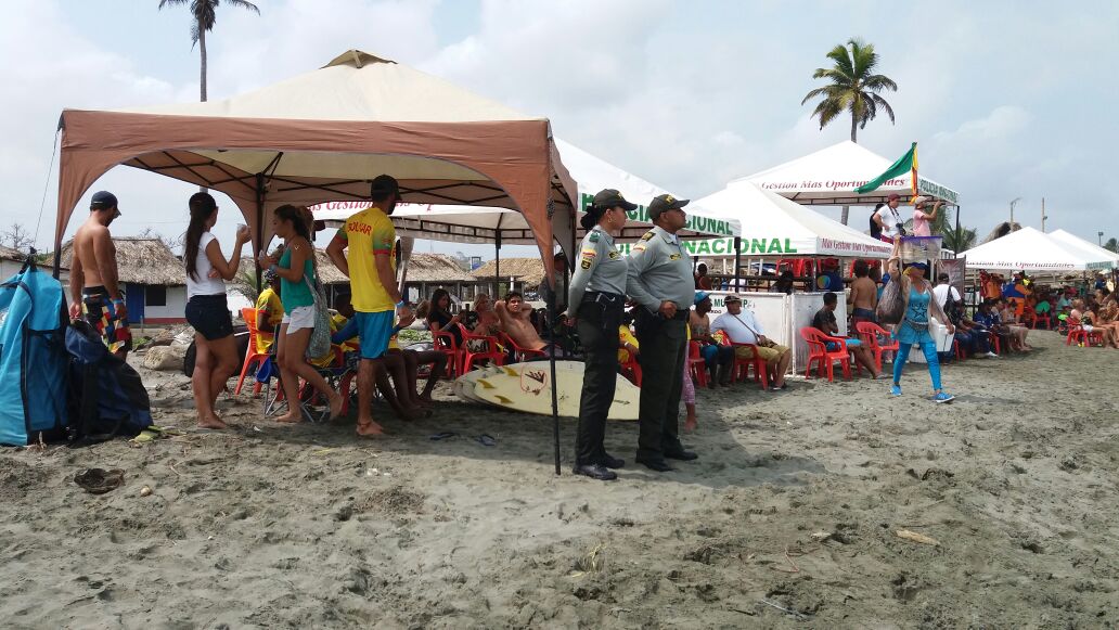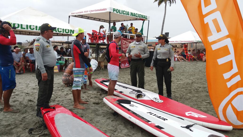 Durante las competencias de surfers el personal policial del grupo de Protección al Turismo y Patrimonio Nacional del departamento de Policía Córdoba, realizó constantes patrullajes preventivos, charlas con recomendaciones de seguridad manteniendo el orden y el normal desarrollo del primer torneo de Surf, que se vive en la playa San Bernardo del Viento.