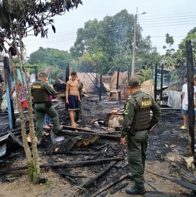 En San José del Guaviare, a través de un llamado oportuno de los habitantes de la invasión arazá, alertaron de un incendio a nuestros Policías del Modelo Nacional de Vigilancia Comunitaria por Cuadrantes, quienes atendieron de manera inmediata la solicitud.