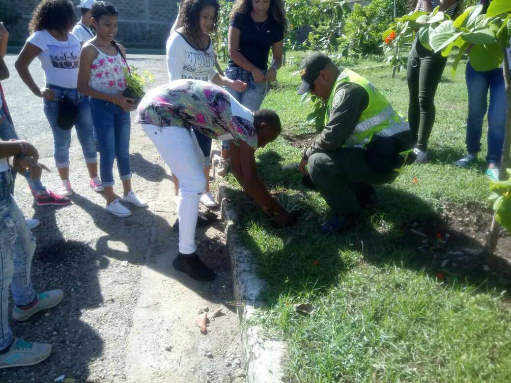 Esta actividad desplegada con adolescentes que integran el Grupo Juvenil Ambiental “Amigos de la Naturaleza”, quienes bajo la coordinación de funcionarios del Grupo de Protección Ambiental y Ecológica de la Policía Metropolitana realizaron la siembra de 60 plantas ornamentales en los parques de Villa Olímpica y el barrio Chiquinquirá, en el suroriente de la ciudad.