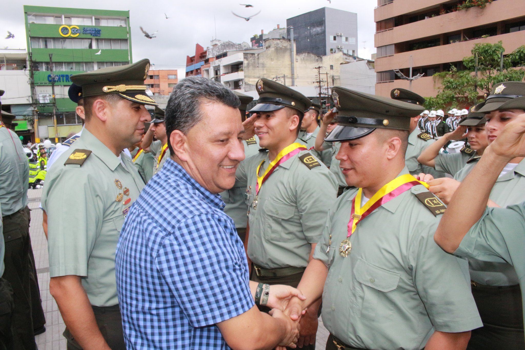 Finalmente en el parque Murillo Toro, se realizó la ceremonia del acto solemne donde nuestra Policía Metropolitana de Ibagué, donde se condecoraron 110 Policías con la medalla servicios distinguidos, 80 hombres y mujeres de la Metropolitana de Ibagué con la medalla al servidor público de la Gobernación del Tolima otorgada por el señor gobernador Dr. Óscar Barreto, 80 hombres y mujeres Policías con la orden Ciudad de Ibagué otorgada por el señor alcalde Dr. Guillermo Alfonso Jaramillo, 4 ciudadanos que se destacaron por contribuir a la institución recibieron la medalla mérito al ciudadano y el subteniente Chtistian Gonzales con la medalla al valor.