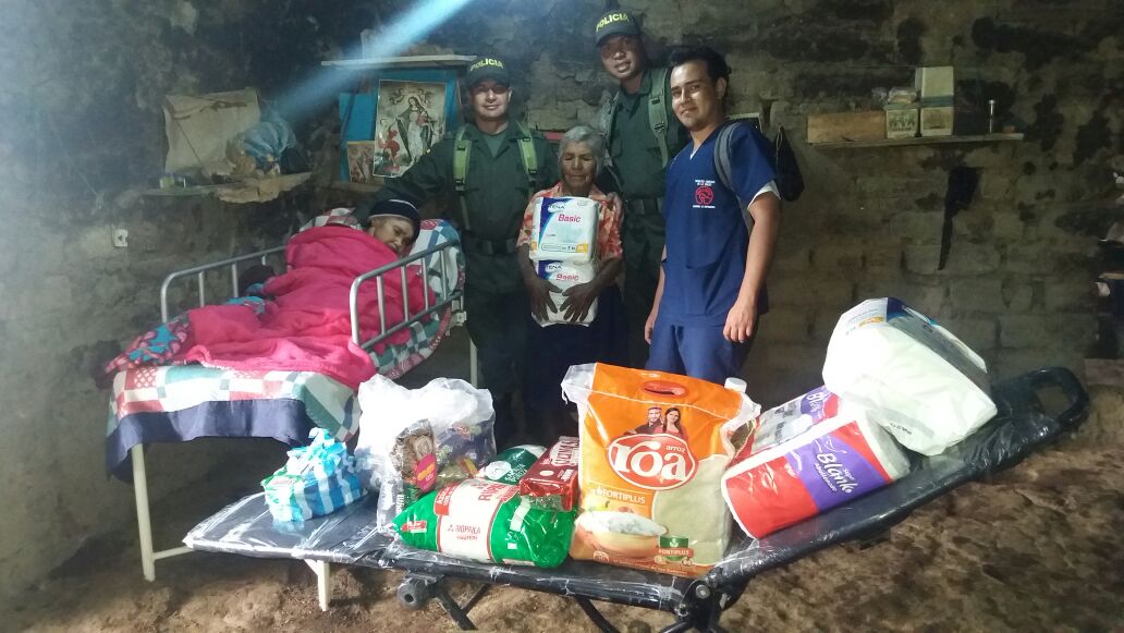 Teniendo en cuenta esta situación y que los principios fundamentales del Código Nacional de Policía son preventivos y tienen como base fundamental la prevalencia de los valores sociales de solidaridad, tolerancia, responsabilidad, honradez, respeto, bondad, libertad, justicia, fraternidad, lealtad, prudencia, paz y sobre todo la dignidad humana, la Policía Nacional empezó a tocar puertas con algunas entidades y comerciantes de la localidad, logrando gestionar dos camillas que fueron instaladas en la habitación de las beneficiarias, para que sea más fácil moverla y a su vez realizarle el aseo personal.