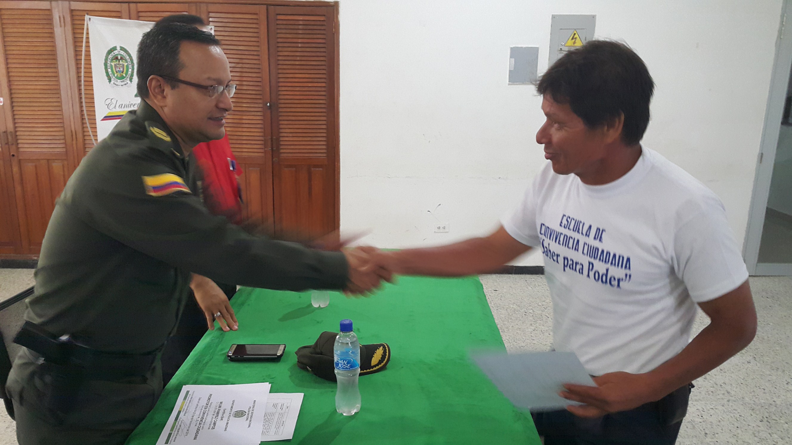 De manos del señor Coronel José Joaquín Devia Aguilar - Comandante del Departamento de Policía Amazonas recibieron los presidentes de las Juntas de Acción Comunal de los barrios de Leticia, su diploma que los certifica como “Promotores en Convivencia y Seguridad Ciudadana; el evento tuvo lugar en el auditorio “Salón Banderas” de la instalaciones policiales, con la presencia y participación de familiares y allegados de los líderes que recibieron la certificación.