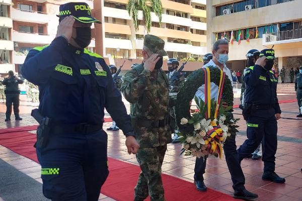 La Policía Nacional el día de hoy y como todos los años participó de los actos protocolarios que se llevaron a cabo en la plazoleta de banderas de la Gobernación, donde se llevó a cabo la izada del pabellón Nacional, las banderas del Departamento del Huila y del municipio de Neiva.