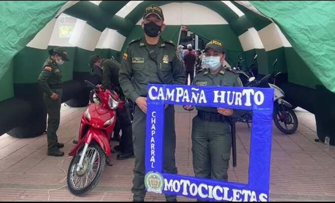 En atención a la implementación de la estrategia contra el hurto a motocicletas, el departamento de Policía Tolima desarrolló el Plan Toma Localidad en el parque principal de Chaparral, e implementó una llamativa campaña dirigida a los motociclistas del municipio denominada ‘Marca Tu Moto’