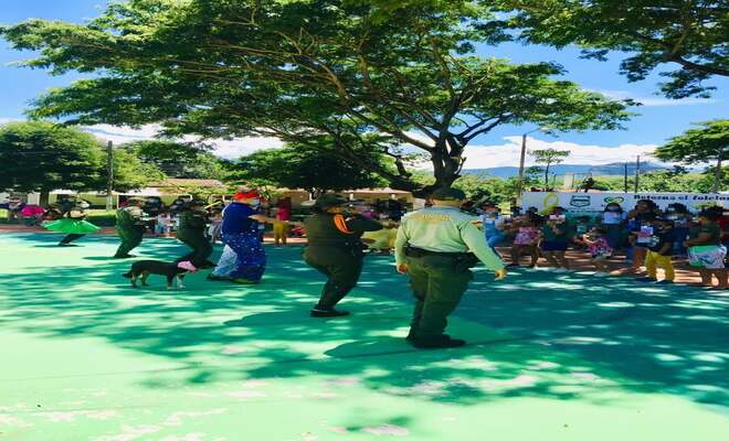 Continuando con la implementación de los Comandos situacionales y del proyecto SUMA, voces y acciones para la convivencia en las últimas horas el departamento de Policía Tolima, con funcionarios adscritos al grupo de prevención y educación ciudadana, grupo de Infancia y adolescencia, Policía turismo y patrimonio nacional, grupo de Policía ambiental y ecológica, grupo de carabineros y guías caninos, personal de la seccional de tránsito y transporte y personal de los cuadrantes, llegaron hasta el sector polideportivo del barrio la Vega del municipio del Ortega, donde llevaron a cabo actividades de acercamiento a la comunidad, por medio de ejercicios lúdicos y recreativos con los niños, niñas, adolescentes y padres de familia, así como Danzas folclóricas realizadas por los policiales, Show Canino, globoflexia, pintucarita, rondas infantiles y demás, pasando una mañana maravillosa llena de alegría y diversión.