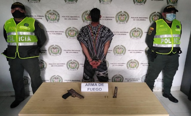 El segundo caso se presentó sobre la media noche en la calle 8 con carrera 5 sector parque principal del municipio de Ambalema, lugar donde personal del cuadrante logró la captura en flagrancia de un sujeto, a quien mediante registro e identificación a persona se le incauto 01 arma de fuego tipo Pistola de fabricación artesanal calibre 22 con 01 proveedor y 02 cartuchos para la misma, avaluado en cerca de $1.000.000, sin permiso para porte o tenencia, siendo dejados a disposición de la Fiscalía 65 local de Venadillo, por el delito de fabricación, trafico, porte o tenencia de armas de fuego accesorios partes o municiones.