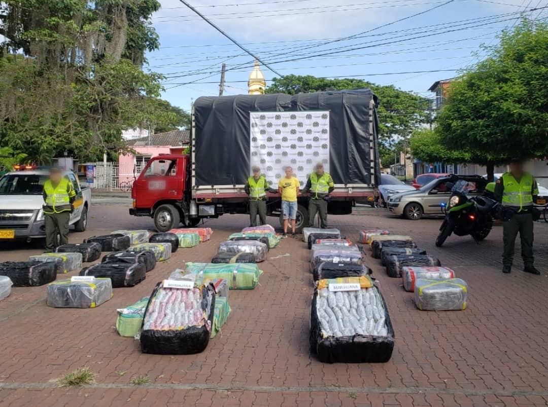 En el primer procedimiento se llevó a cabo en el peaje la Uribe del municipio de Bugalagrande, donde al interior de un vehículo tipo camión que simulaba transportar material reciclaje (botellas) fue hallado aproximadamente una tonelada de marihuana, es de anotar que al parecer este alijo tenía como destino el departamento de Risaralda.