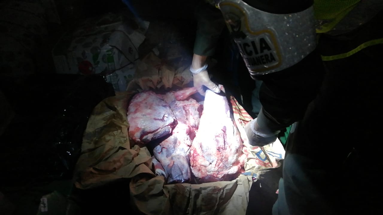 Así mismo, el Grupo de Protección Ambiental y Ecológica, en el barrio Ricaurte en actividades de vigilancia y control realizó la incautación de 125 kilogramos de carne, que estaban siendo transportados en un automóvil sin documentos que certifiquen su legalidad y buen estado para el consumo.