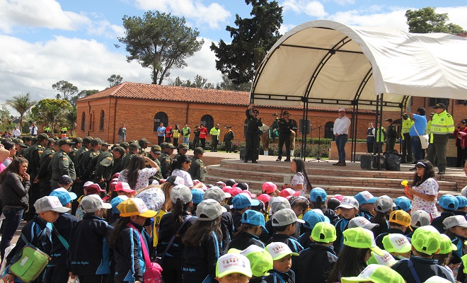 Nuestra Policía Nacional en el marco del pilar institucional ‘Una policía para la gente’, abre las puertas de la Escuela de Suboficiales y Nivel Ejecutivo “Gonzalo Jiménez de Quesada” a más de 1600 niños y niñas de las instituciones educativas públicas y privadas del municipio de Sibaté. Durante los días cinco y seis de septiembre de 2019 nuestra escuela se engalana con la presencia de estos menores asegurando su sano desarrollo y esparcimiento. Esta actividad desarrollada junto con la Alcaldía de Sibaté fue denominada Festival Preescolar.