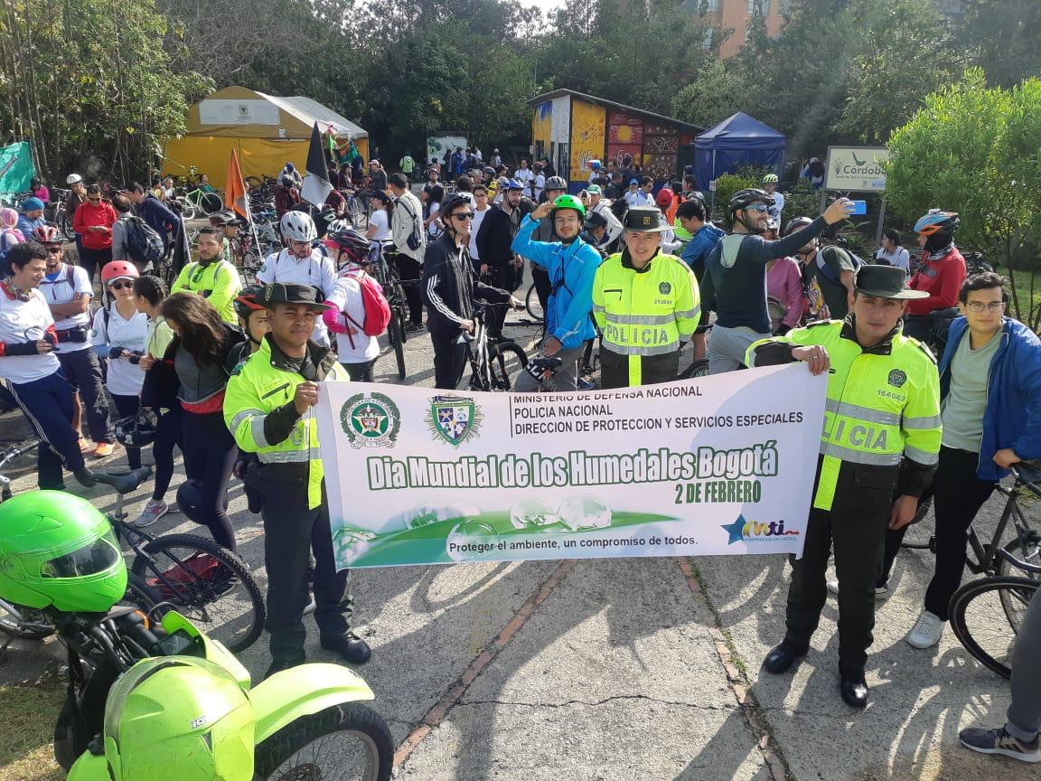 la Policía Nacional en coordinación con la Fundación Humedales de Bogotá, participa en la sexta versión de Bicicaravana en conmemoración del día Mundial de los Humedales, esta actividad de participación cívica enmarcada en el plan de choque “El que la hace la paga”, y las estrategias para reducción de los delitos contra los crímenes al ambiente, busca generar en la comunidad conciencia sobre la responsabilidad que todos tenemos en la preservación de estas zonas bióticas.