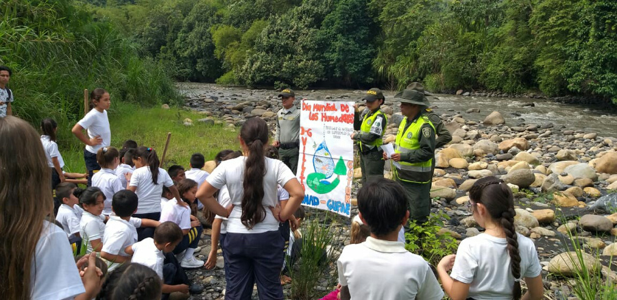 Los humedales son de vital importancia no solo para la existencia del ser humano sino para la supervivencia de fauna y la diversidad de flora. Colombia, cuenta con un registro de 31.702 humedales y ocupa el tercer lugar con mayor oferta hídrica en el planeta, por consiguiente, la Policía Nacional con más de 670 acciones de prevención en recursos hídricos y cerca de 34.000 beneficiados busca incentivar la protección y cuidado de la naturaleza, en especial de estas tierras inundadas de vida y la sensibilización de la problemática del uso inadecuado del recurso hídrico. Así mismo a nivel nacional la Policía Nacional viene adelantando campañas de prevención y conservación de los humedales, sensibilización ambiental y siembra de árboles.
