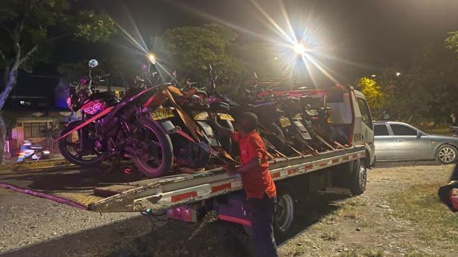 Tras la persecución que se extendió sobre la carrera 30 y la transversal 12, el hombre fue interceptado por los uniformados, hallándole en su poder una pistola traumática con 04 cartuchos para la misma. Además, se constató que la motocicleta figuraba hurtada, motivo por el cual este hombre fue capturado en flagrancia por el delito de receptación.