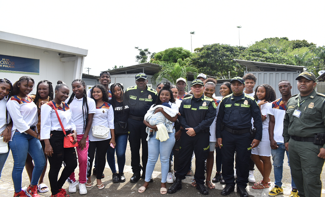 El señor brigadier general William Oswaldo Rincón Zambrano, jefe de la Unidad Policial para la Edificación de la Paz – UNIPEP, en coordinación con el señor capitán Parménides Palacios Rentería, orientador de la línea de enfoque étnico y diferencial para el servicio policial, realizaron reconocimiento y acompañamiento a jóvenes en Tumaco-Nariño, por su compromiso y liderazgo con el desarrollo en la región como integrantes del Proyecto Laboratorio de Paz, Convivencia y Seguridad Humana, que busca empoderar a las juventudes a través de programas de educación como: cultura, deporte, ciencia tecnología e innovación; favoreciendo a las comunidades del territorio nacional para la construcción de paz.