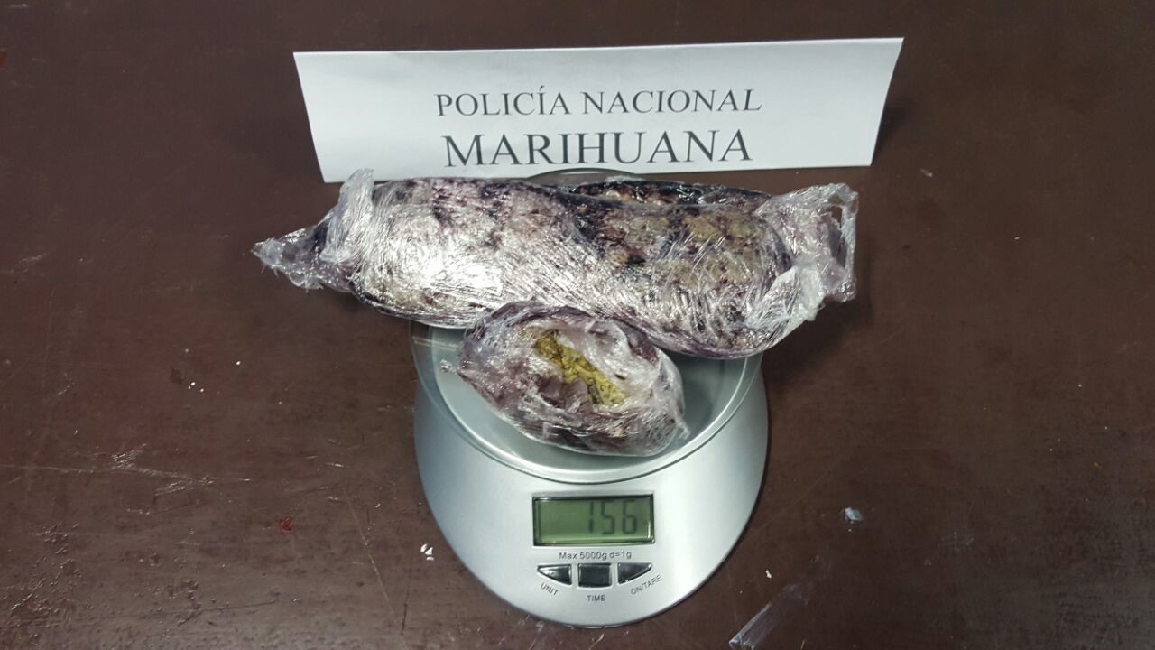 El sujeto fue detenido por unidades adscritas a la Estación de la terminal aérea, cuando este arribaba de un vuelo procedente de la ciudad de Cartagena. Su actitud sospechosa incitó a los uniformados a practicarle un registro, en el que se le hallaron 156 gramos de marihuana camuflados en las plantillas de sus zapatos.