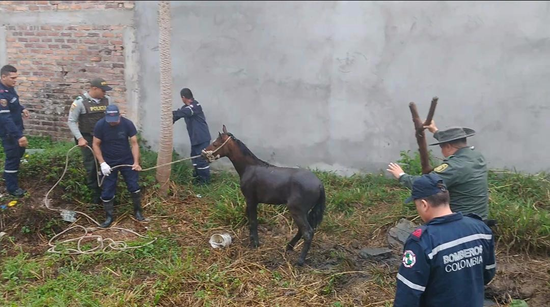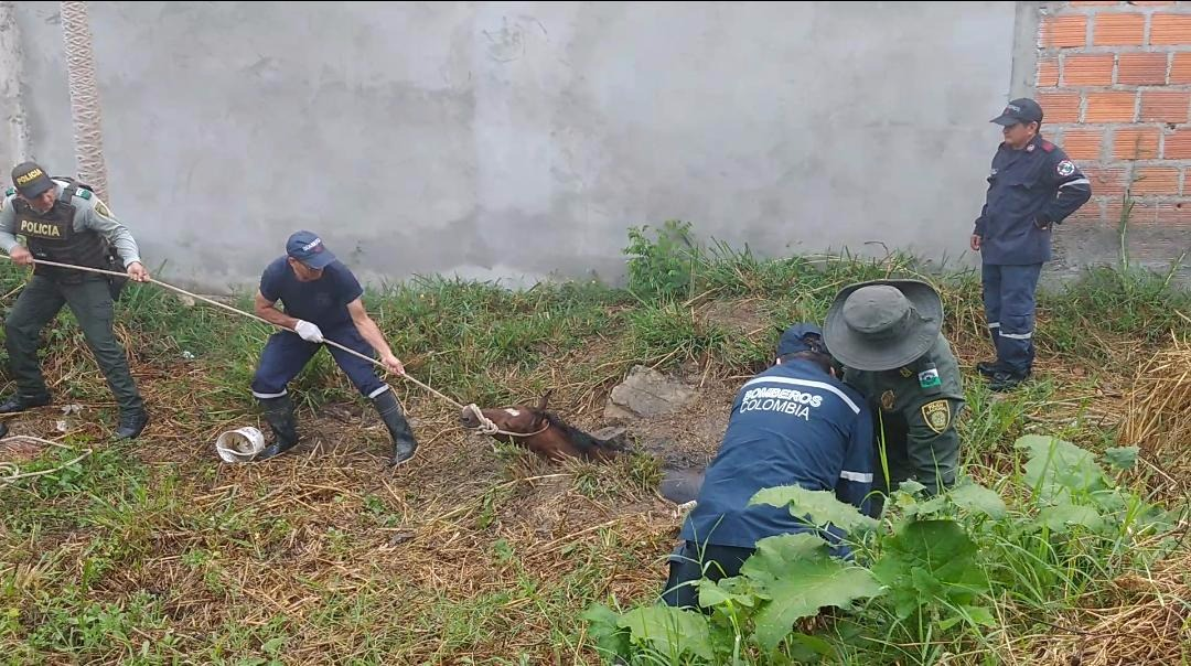 De inmediato coordinó con dos compañeros de la Estación de Policía Ocaña el plan de rescate y la verificación de la situación, al llegar al lugar evidenciaron un caballo atrapado en lo que pareciera ser un pozo séptico ubicado en un lote donde pasteaba el animal, los uniformados se aprestaron a conseguir sogas, palos y a coordinar la asistencia técnica de Bomberos de municipio logrando extraer del lugar al potrillo que por varias horas había permanecido en un hueco de 90 centímetros por dos metros de profundidad y el cual ya presentaba síntomas de hipotermia.