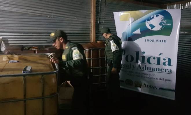 En acción realizada por efectivos de la Policía Fiscal Aduanera, en el corregimiento de El Juncal jurisdicción del municipio de Aguachica Cesar, se logra la aprehensión de más 13.640 galones de combustible avaluados en más de 60 millones de pesos, los cuales no cuentan con la marcación autorizada por Ecopetrol para los combustibles de procedencia nacional, según lo estipulado en la normatividad colombiana, quedando a disposición de la Dirección de Impuestos Aduanas Nacionales DIAN.