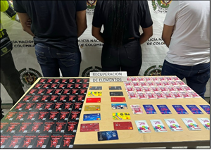 Los elementos incautados oscilan aproximadamente en $25.000.000 millones de pesos, en tarjetas de crédito y $ 90.000.000 millones de pesos en bonos de regalos.