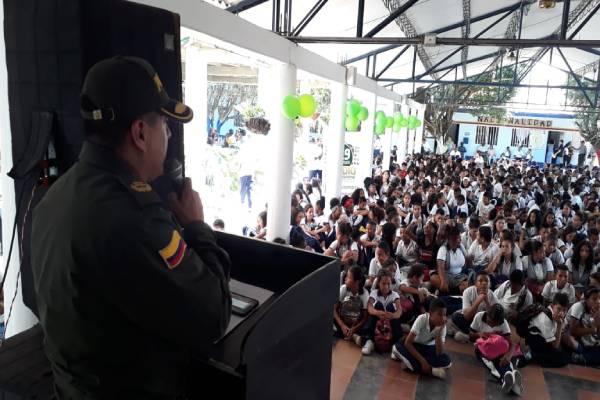 Esta actividad que se lleva a cabo simultáneamente en diferentes partes de la subregión, así como también en el territorio nacional, hace parte del plan integral de intervención a colegios, lo cual busca fortalecer la seguridad en los entornos de los establecimientos educativos, coadyuvar al desarrollo integral de los estudiantes, espacios seguros y libres de drogas.