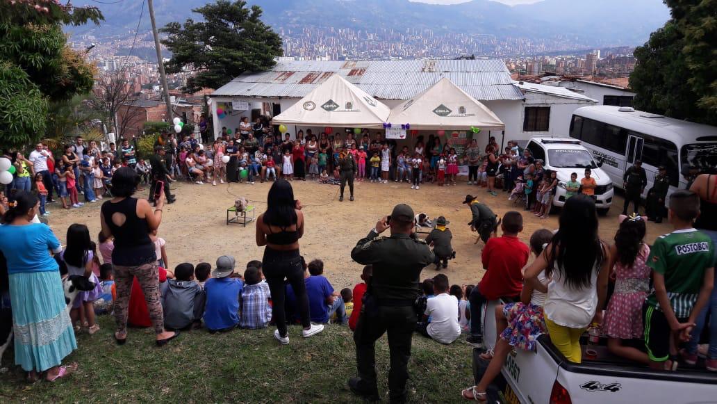 En total fueron beneficiados 90 niños, niñas y adolescentes de las comunas San Javier y Belén de Medellín, con quienes se realizó la novena de aguinaldos, y posterior la interacción con el helicóptero Halcón. Además, se organizó show canino, actividades lúdico-recreativas y les fueron entregados regalos en apoyo de empresas del sector privado, las cuales se vincularon a esta gran labor.