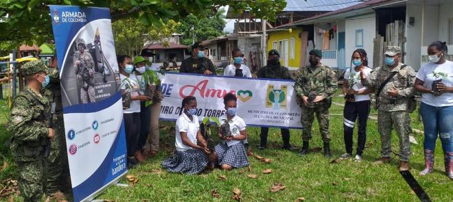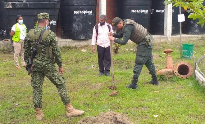 En una actividad enfocada a la protección de los recursos ambientales, uniformados adscritos a la Estación de Policía Olaya Herrera, con el apoyo del Ejercito Nacional y comunidad en general, llevó a cabo una actividad ambiental denominada “Cuando siembras un árbol, cultivas la esperanza de una vida mejor”, cuyo objetivo fue realizar una siembra de árboles en el parque principal de este municipio.
