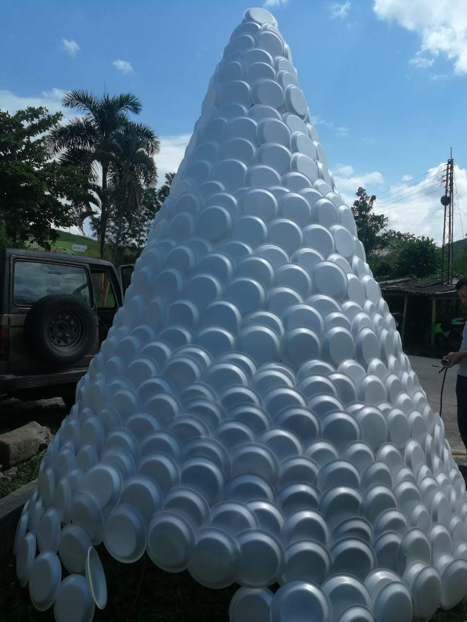 Se hizo con botellas, tapas plásticas, pimpones y chamizos; algunos de los materiales que han utilizado año tras año para darle un tinte ecológico a la celebración de la navidad. Este año no fue la excepción, con el aporte valioso de la comunidad, niños y jóvenes participaron de la iniciativa para que la navidad del 2018 también fuera recordada con un árbol de dos metros de altura, esta vez utilizando platos desechables.