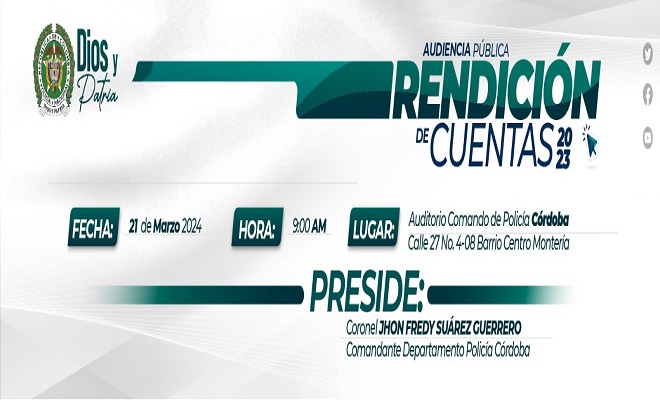 Invitación rendición de cuentas vigencia 2023 Departamento de Policía Córdoba