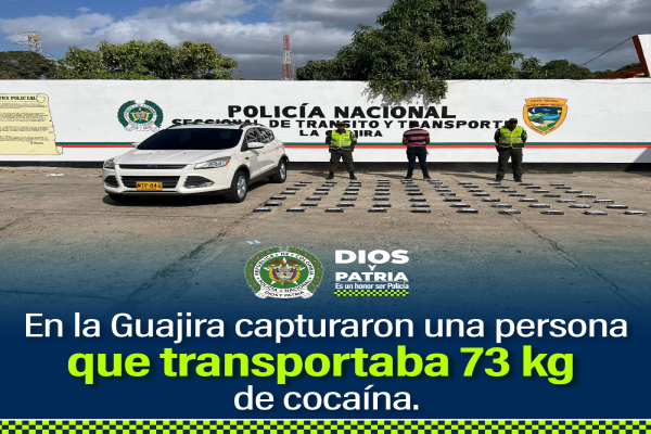 Con 85 kilos de clorhidrato de cocaína, fue capturado un hombre de 25 años de edad en las vías de la guajira