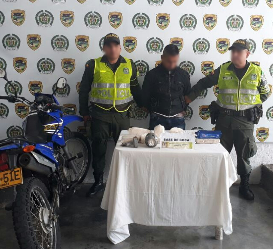 Capturado transportando base de coca encaletada en su maleta y en la motocicleta