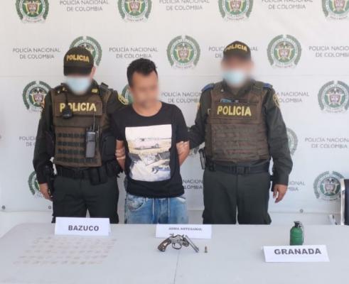 Capturamos un ciudadano quien llevaba consigo un arma de fuego, una granada de aturdimiento y estupefacientes
