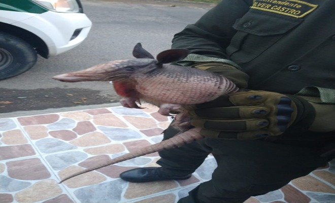 Grupo de protección ambiental logra proteger y liberar un armadillo el cual se encontraba al interior de una vivienda en Melgar